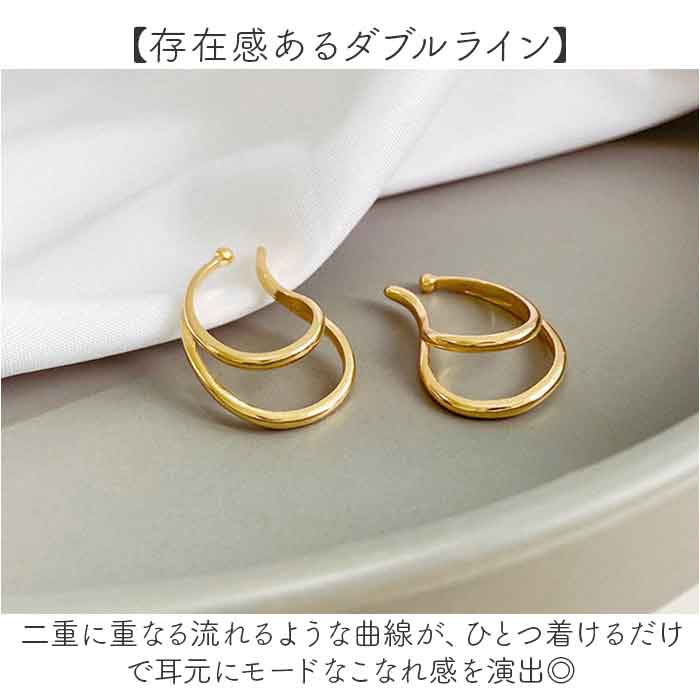 ・二重に重なる流れるような曲線が、ひとつ着けるだけで耳元にモードなこなれ感を演出◎