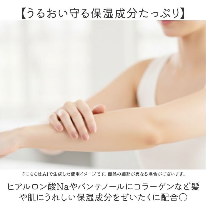 ・ヒアルロン酸Naやパンテノールにコラーゲンなど髪や肌にうれしい保湿成分をぜいたくに配合〇