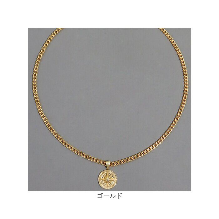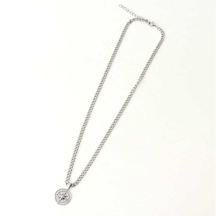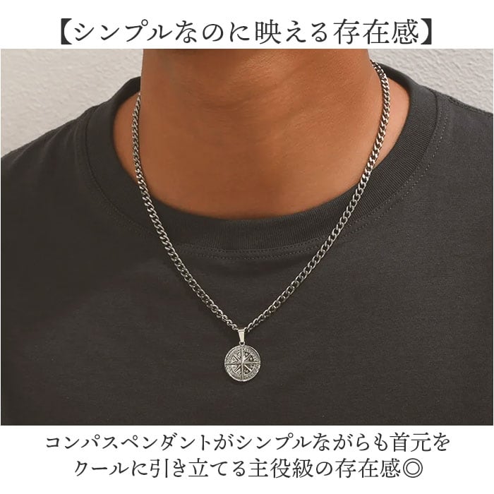 ・コンパスペンダントがシンプルながらも首元をクールに引き立てる主役級の存在感◎