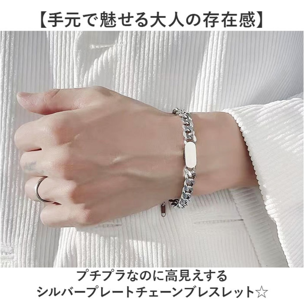 ・フラットなプレートとチェーンの組み合わせが手首をすっきり見せてくれる洗練されたデザイン◎