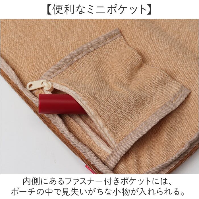 ・内側にあるファスナー付きポケットには、ポーチの中で見失いがちな小物が入れられる。