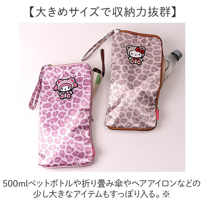 500mlペットボトルや折り畳み傘やヘアアイロンなどの少し大きなアイテムもすっぽり入る。※耐熱性はありませんのでヘアアイロン等を入れる際は必ず完全に冷めてから収納してください。