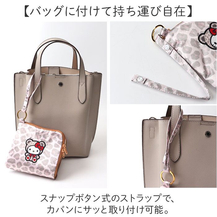 ・スナップボタン式のストラップで、カバンにサッと取り付け可能。
