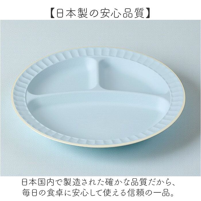 ・抗菌加工で清潔に使える仕切り付き「fuwary 抗菌 ランチプレート」。