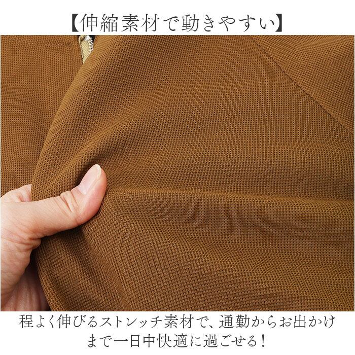 ・程よく伸びるストレッチ素材で、通勤からお出かけまで一日中快適に過ごせる!