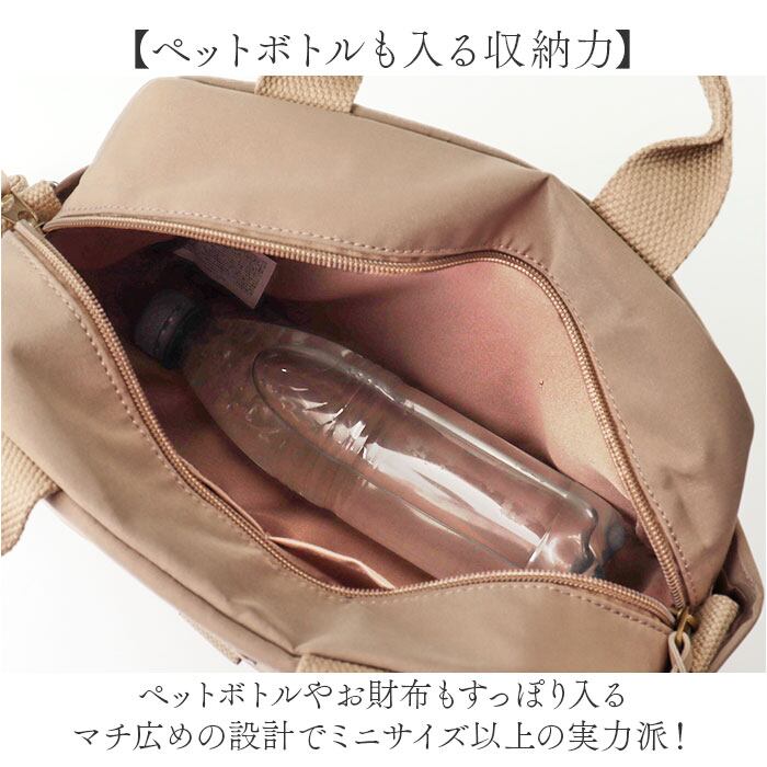 ・ペットボトルやお財布もすっぽり入るマチ広めの設計でミニサイズ以上の実力派!