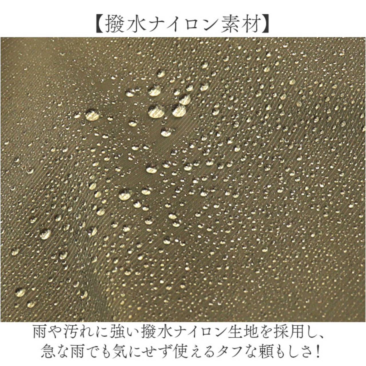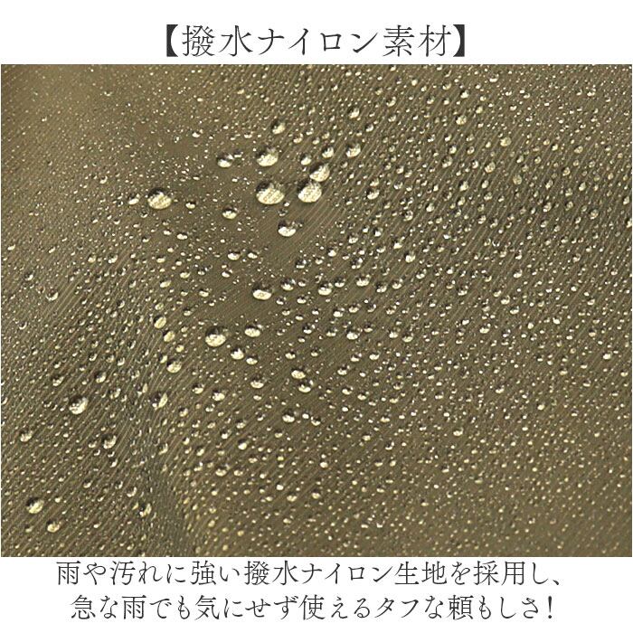 ・雨や汚れに強い撥水ナイロン生地を採用し、急な雨でも気にせず使えるタフな頼もしさ!