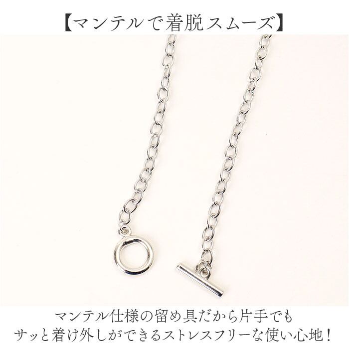 ・マンテル仕様の留め具だから片手でもサッと着け外しができるストレスフリーな使い心地!