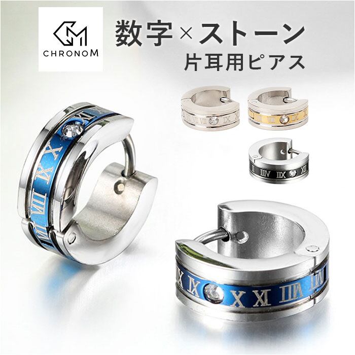 ローマ数字ストーンデザインピアス 片耳