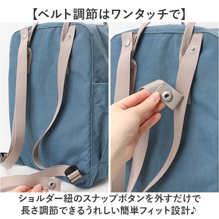 ・ショルダー紐のスナップボタンを外すだけで長さ調節できるうれしい簡単フィット設計♪