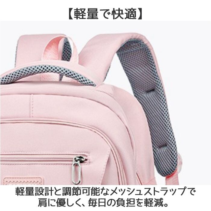 ・軽量設計と調節可能なメッシュストラップで肩に優しく、毎日の負担を軽減。