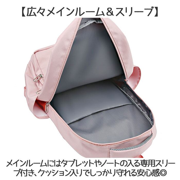 ・メインルームにはタブレットやノートの入る専用スリーブ付き、クッション入りでしっかり守れる安心感◎