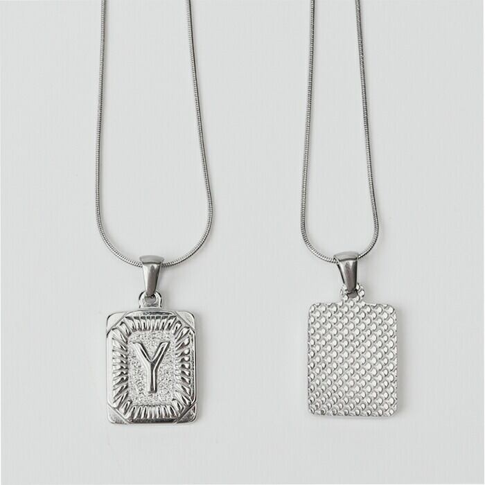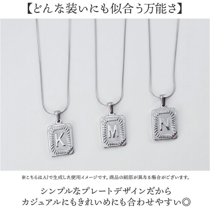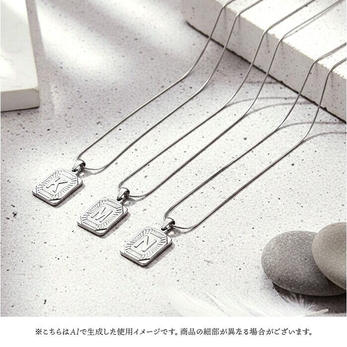 ・イニシャルプレートとスネークチェーンが上品に輝く「AMELIAステンレスネックレス」。