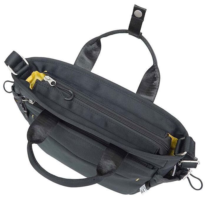 ・持ち方自在、軽やかに決まる「L.R.M 隠しジップ2WAY手提げショルダー」。