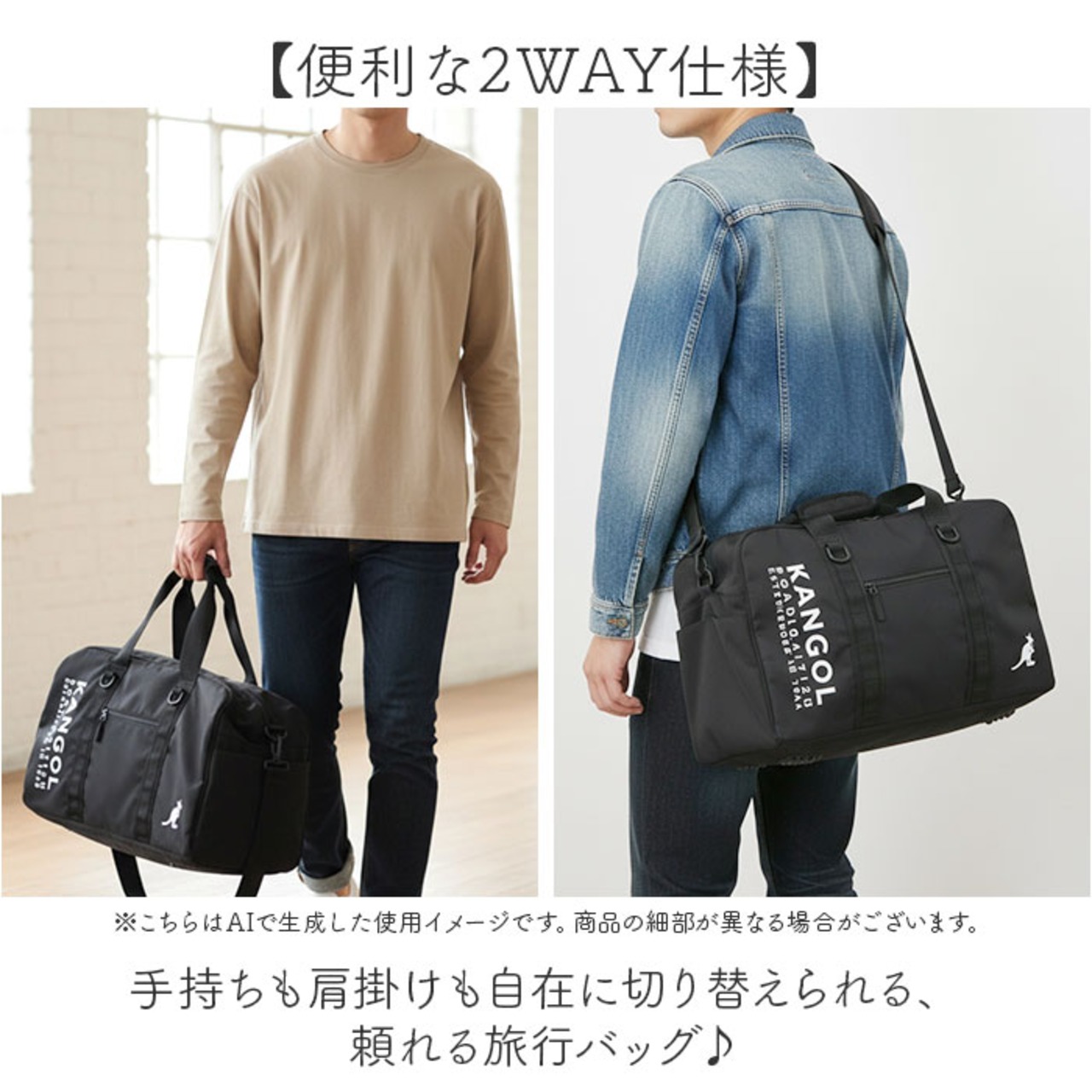 ・手持ちも肩掛けも自在に切り替えられる、頼れる旅行バッグ♪