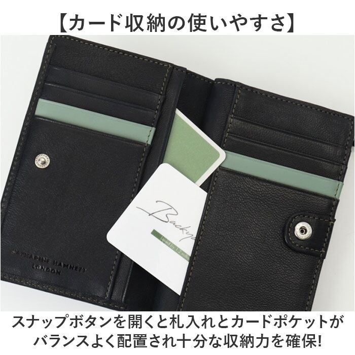 ・羊革を使った軽やかで高品質な「KATHARINE HAMNETT LONDON」の二つ折り財布。