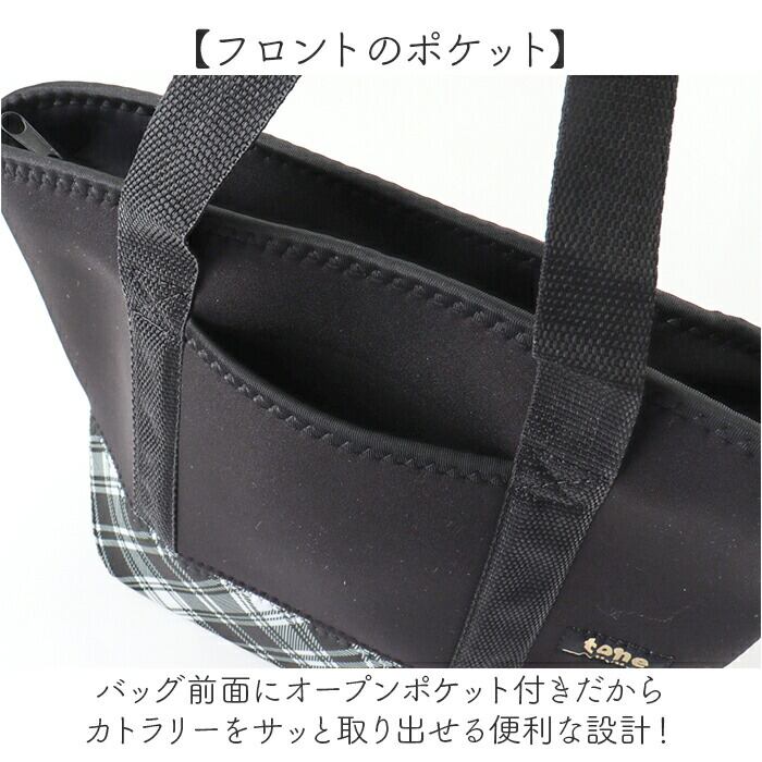 ・バッグ前面にオープンポケット付きだからカトラリーをサッと取り出せる便利な設計!