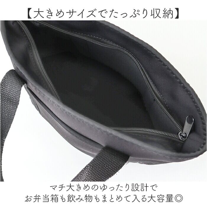 ・マチ大きめのゆったり設計でお弁当箱も飲み物もまとめて入る大容量◎