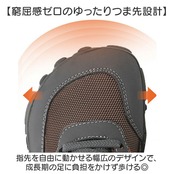【窮屈感ゼロのゆったりつま先設計】 指先を自由に動かせる幅広のデザインで、成長期の足に負担をかけず歩ける◎