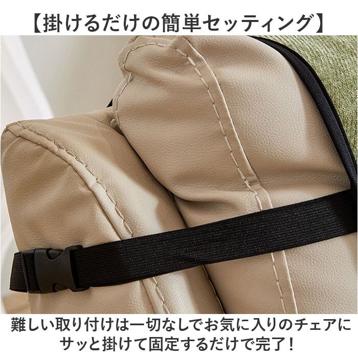 ・難しい取り付けは一切なしでお気に入りのチェアにサッと掛けて固定するだけで完了!