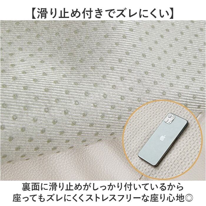 ・裏面に滑り止めがしっかり付いているから座ってもズレにくくストレスフリーな座り心地◎
