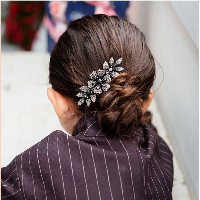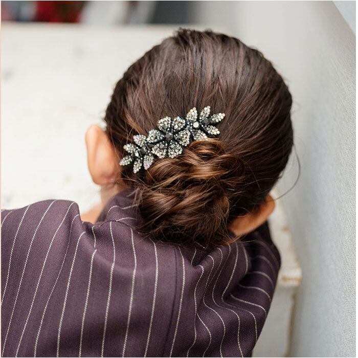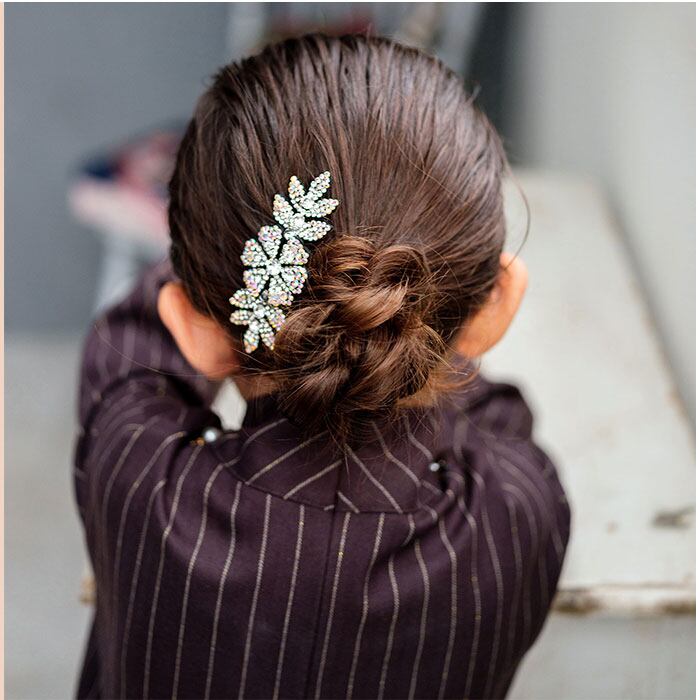 ・光を受けてキラキラと輝く高品質なラインストーンが贅沢に施され、ヘアスタイルを優雅に演出します。