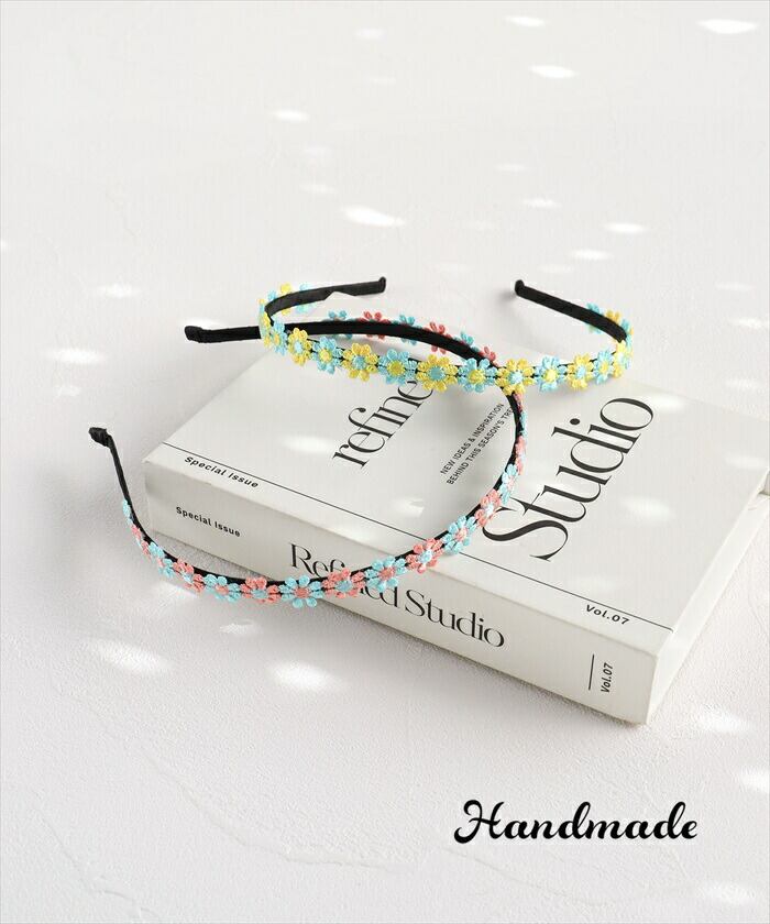 ・繊細な刺繍で丁寧に仕立てた小花たちが、 まるで頭上で寄り添って咲いているような「パステル カチューシャ」。