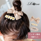 Rora パッチン留め 3個セット 通販 ローラ パッチンどめ ヘアピン パッチンピン 髪留め 髪飾り 子供 子ども 可愛い 女の子 卒園式 入園式 入学式 卒業式 ピアノ発表会 結婚式 七五三 リボン お花 かわいい 子ども用アクセサリー ヘアアクセサリー