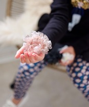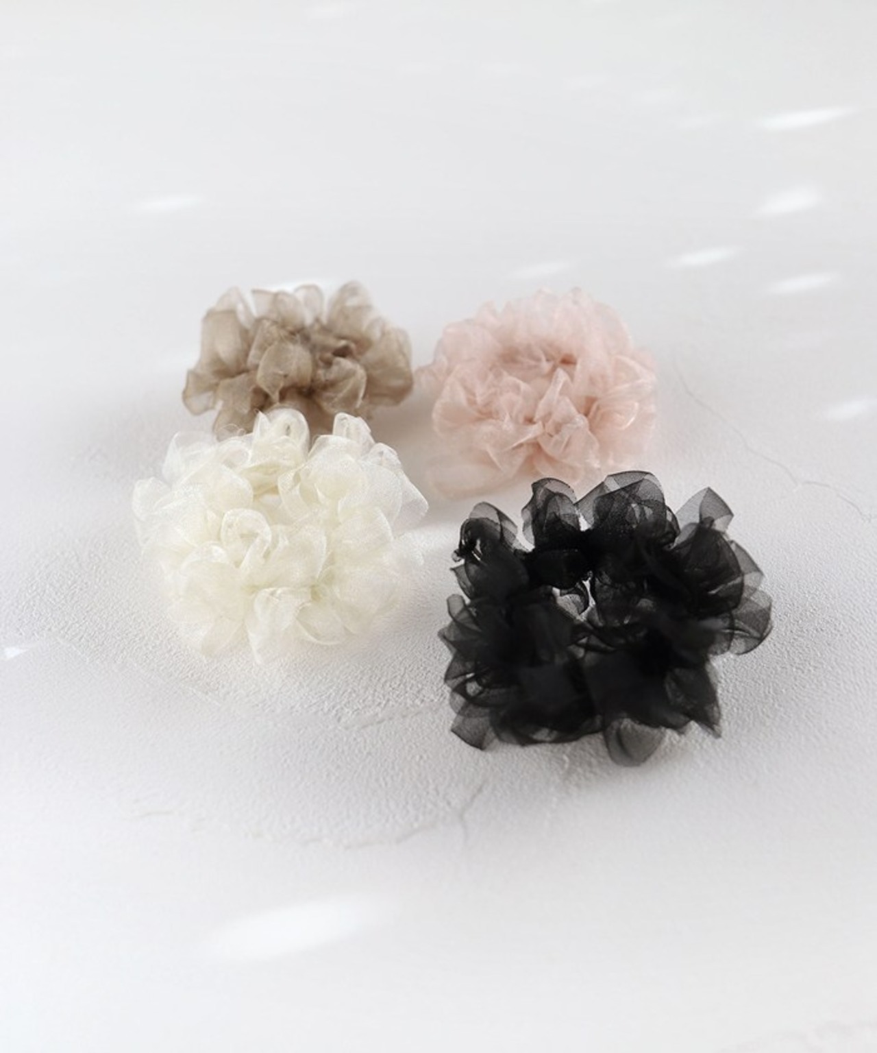 ・きらめくオーガンジー素材と幾重にも重なるフリルが魅力の「ふわふわ シュシュ」。