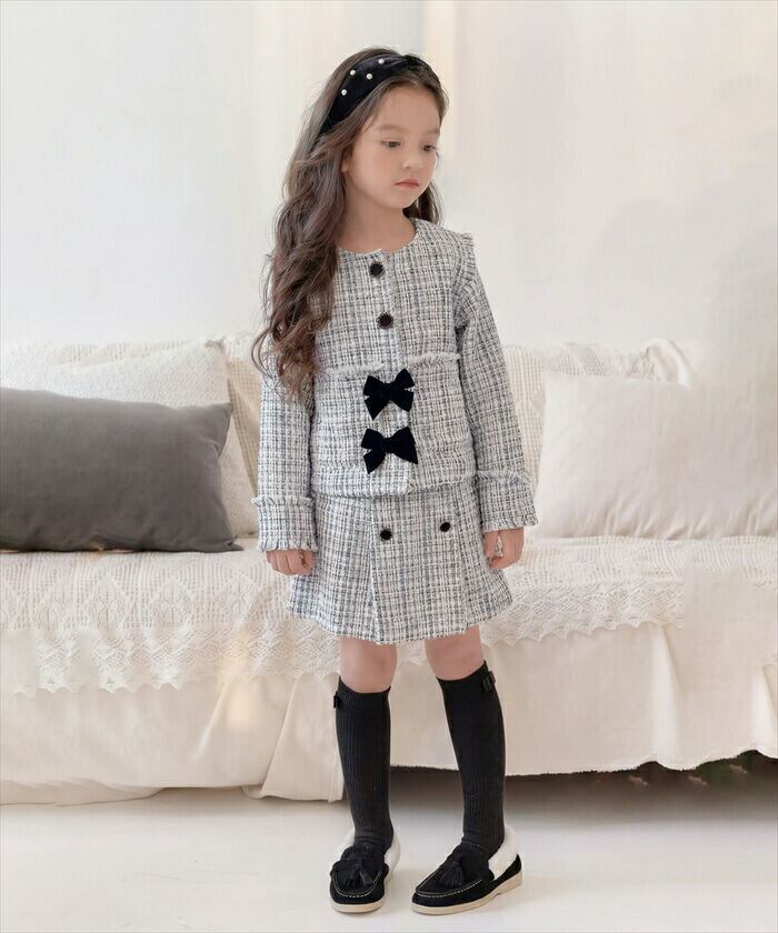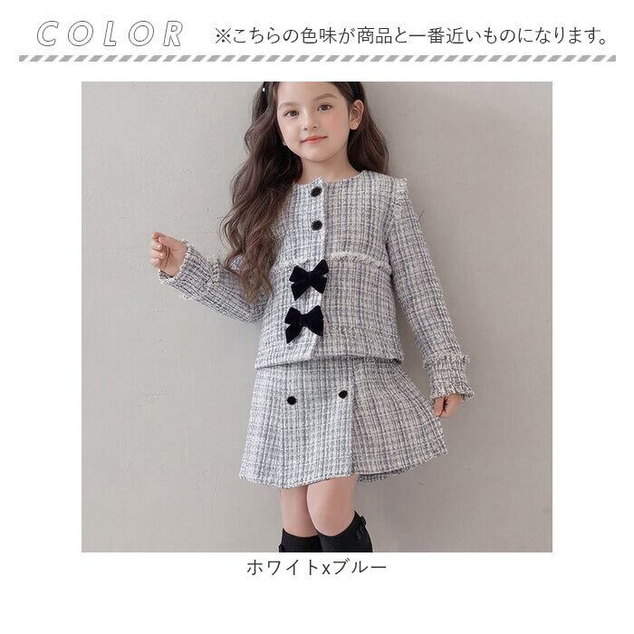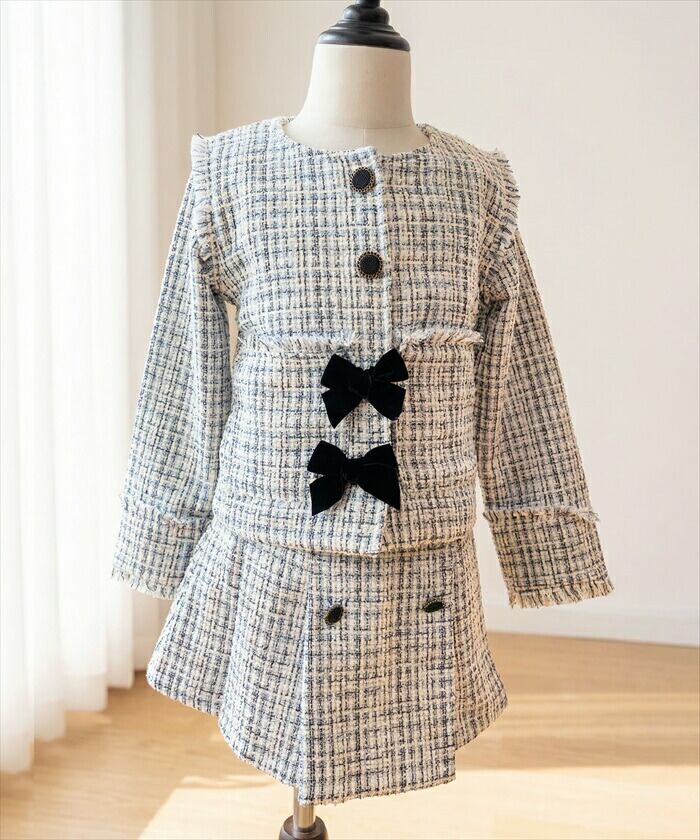 キッズ スーツ 入学式 女の子 通販 Rora ローラ アイリス ツイード セットアップ フォーマルスーツ 上下セット 子ども 卒園式 結婚式 発表会 七五三 上品 ノーカラージャケット おしゃれ 可愛い 大人 リボン 子ども服 子供服 キッズファッション