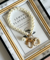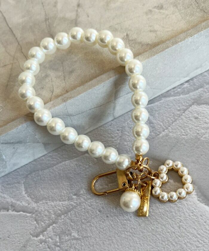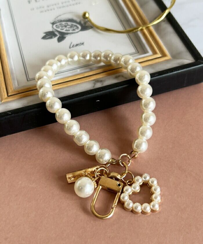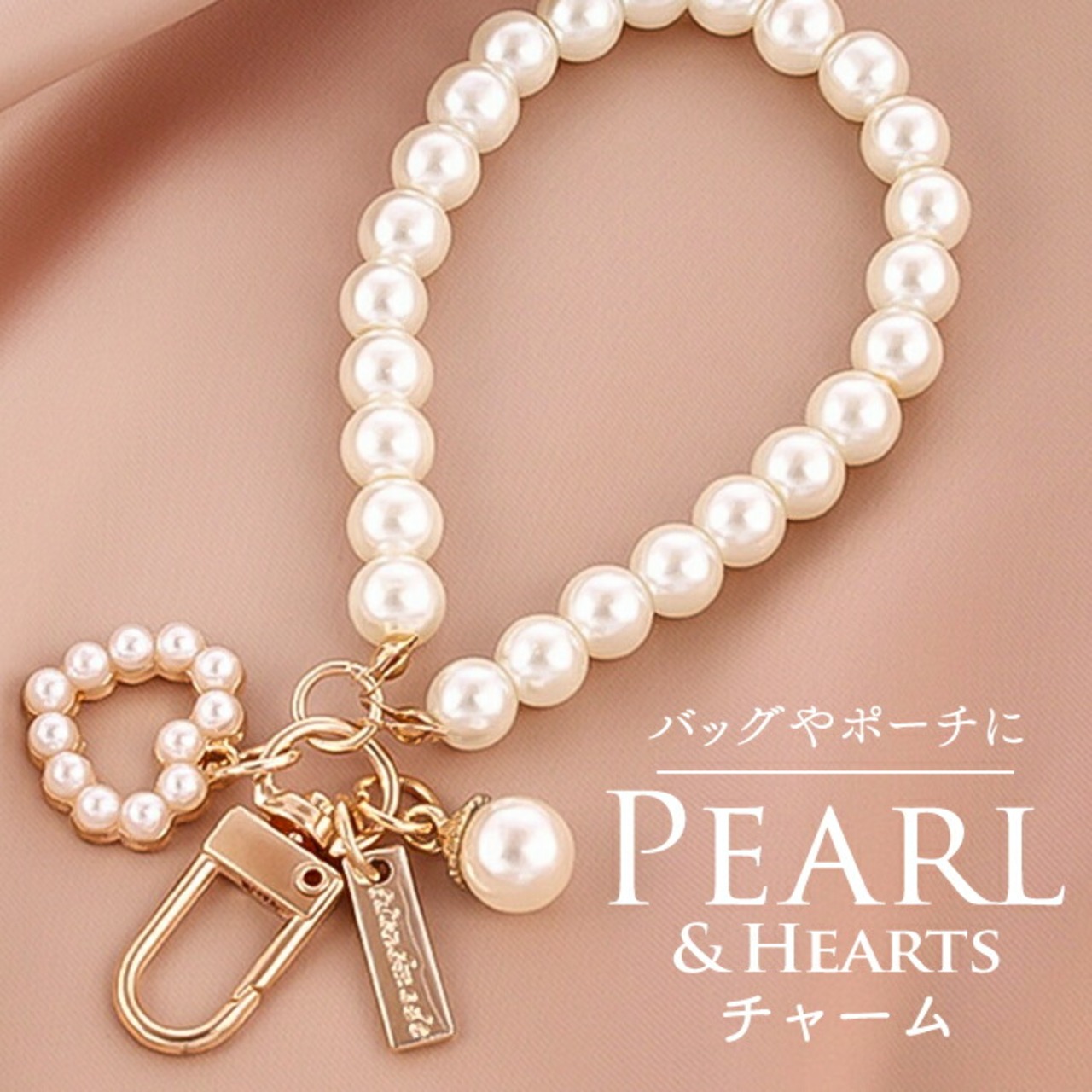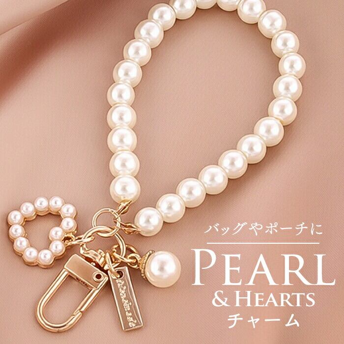 ・艶やかなパールビーズが連なったループに、ハートモチーフやゴールドチャームをあしらい、フェミニンで高級感のあるデザイン。