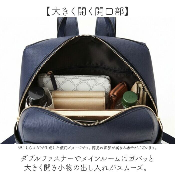 ・ダブルファスナーでメインルームはガバッと大きく開き小物の出し入れがスムーズ。