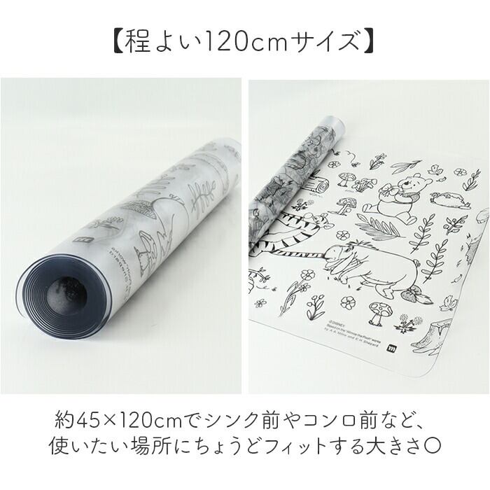 ・約45×120cmでシンク前やコンロ前など、使いたい場所にちょうどフィットする大きさ〇