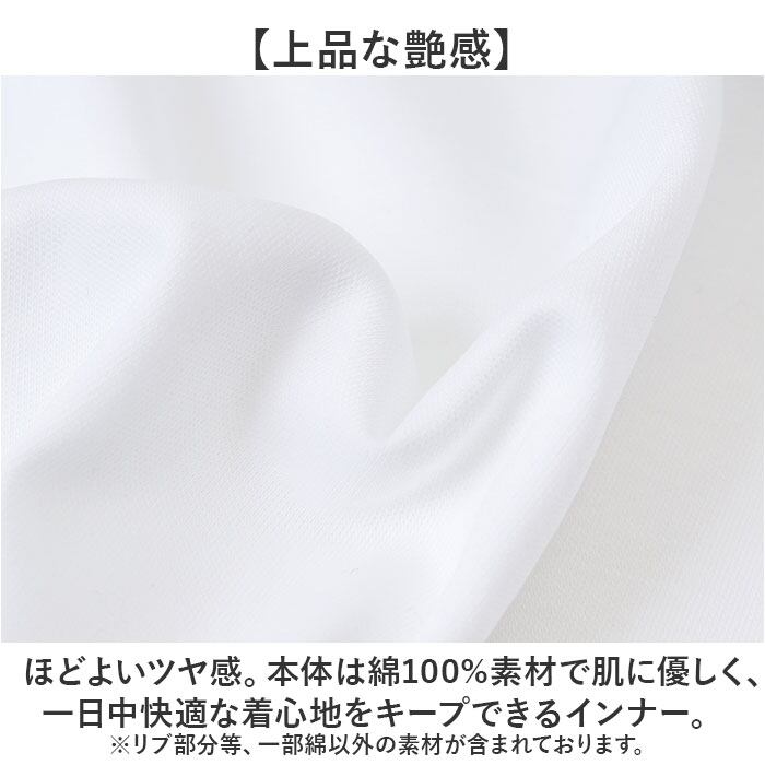 ・ほどよいツヤ感。本体は綿100%素材で肌に優しく、一日中快適な着心地をキープできるインナー。 ※リブ部分等、一部綿以外の素材が含まれております。