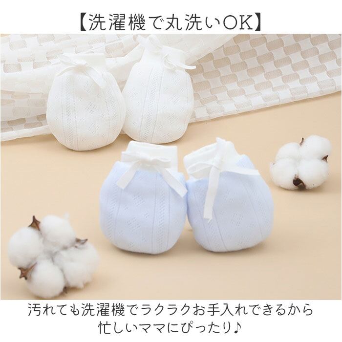 ・かきむしりや指しゃぶりのクセから大切なベビーのお肌をしっかりガードする安心設計!