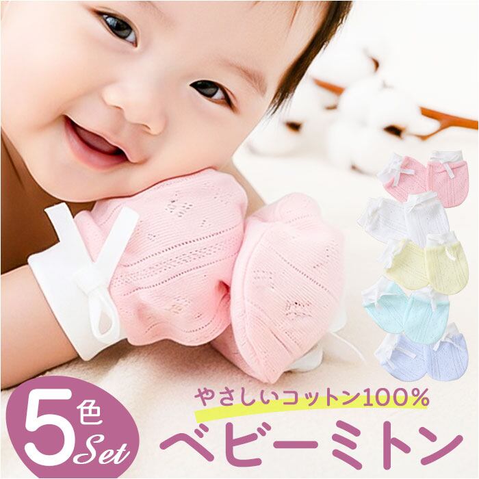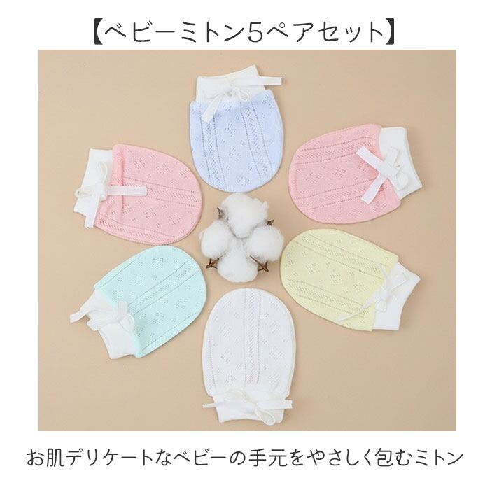 ベビーミトン 5ペアセット お肌に優しいコットン100%