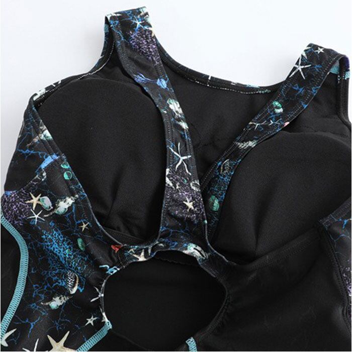 ・ワンピース仕様でめくれる心配がなく激しいキックやターンでも集中力が途切れない構造!