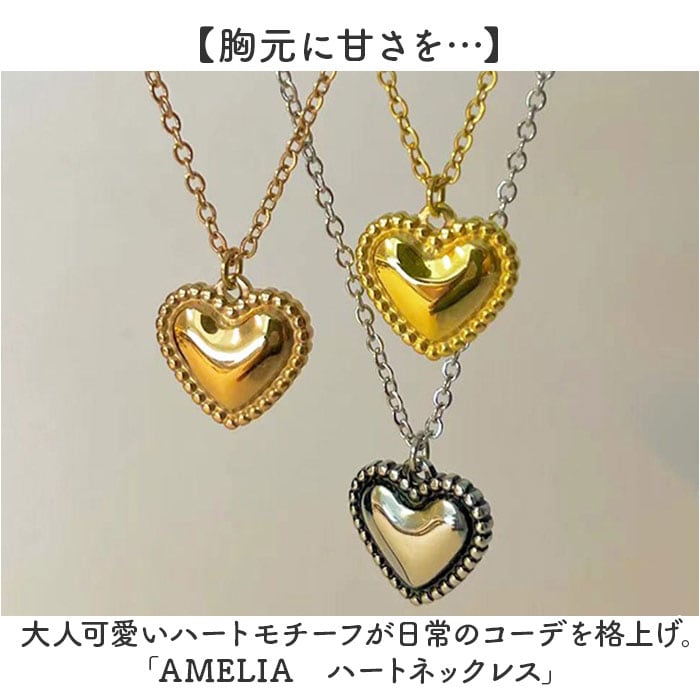 ・大人可愛いハートモチーフが日常のコーデを格上げ。「AMELIA ハートネックレス」