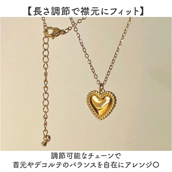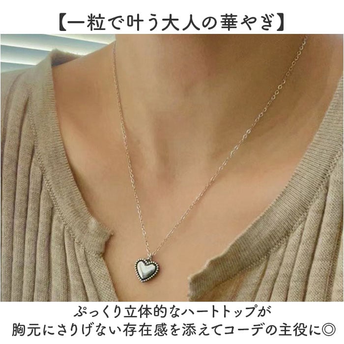 ・ぷっくり立体的なハートトップが胸元にさりげない存在感を添えてコーデの主役に◎