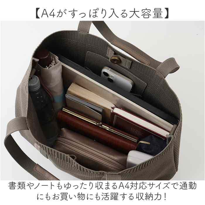 ・書類やノートもゆったり収まるA4対応サイズで通勤にもお買い物にも活躍する収納力!
