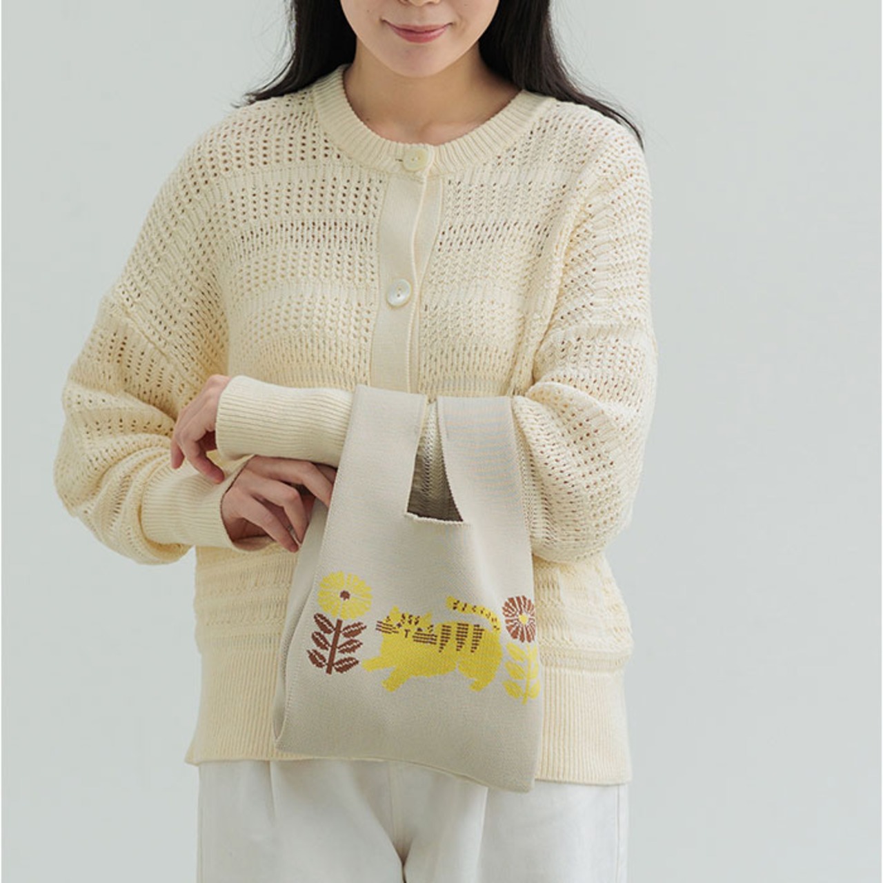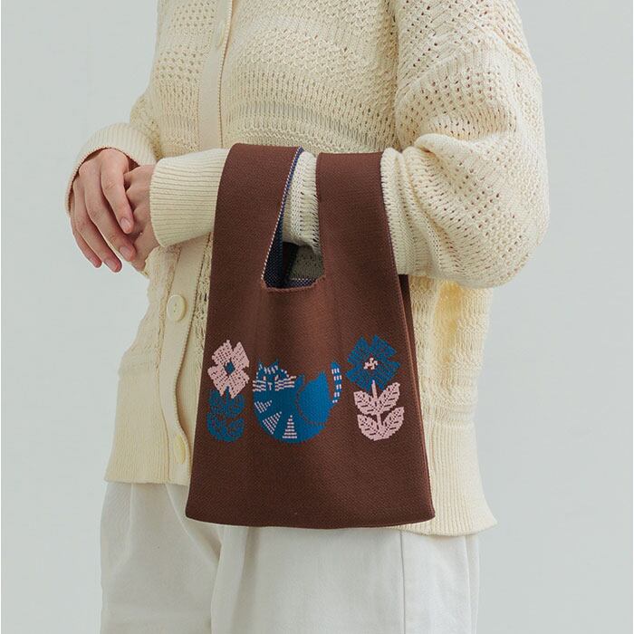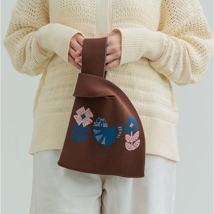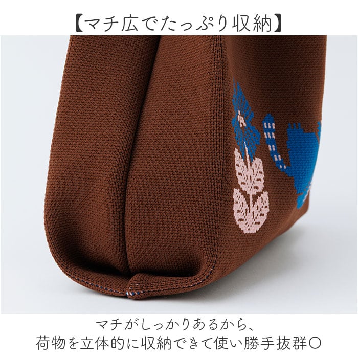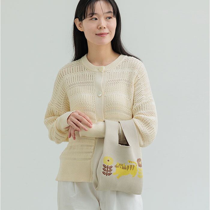 ・畳めて便利なニット素材の小さめ「fikalycka ニットバッグ」。