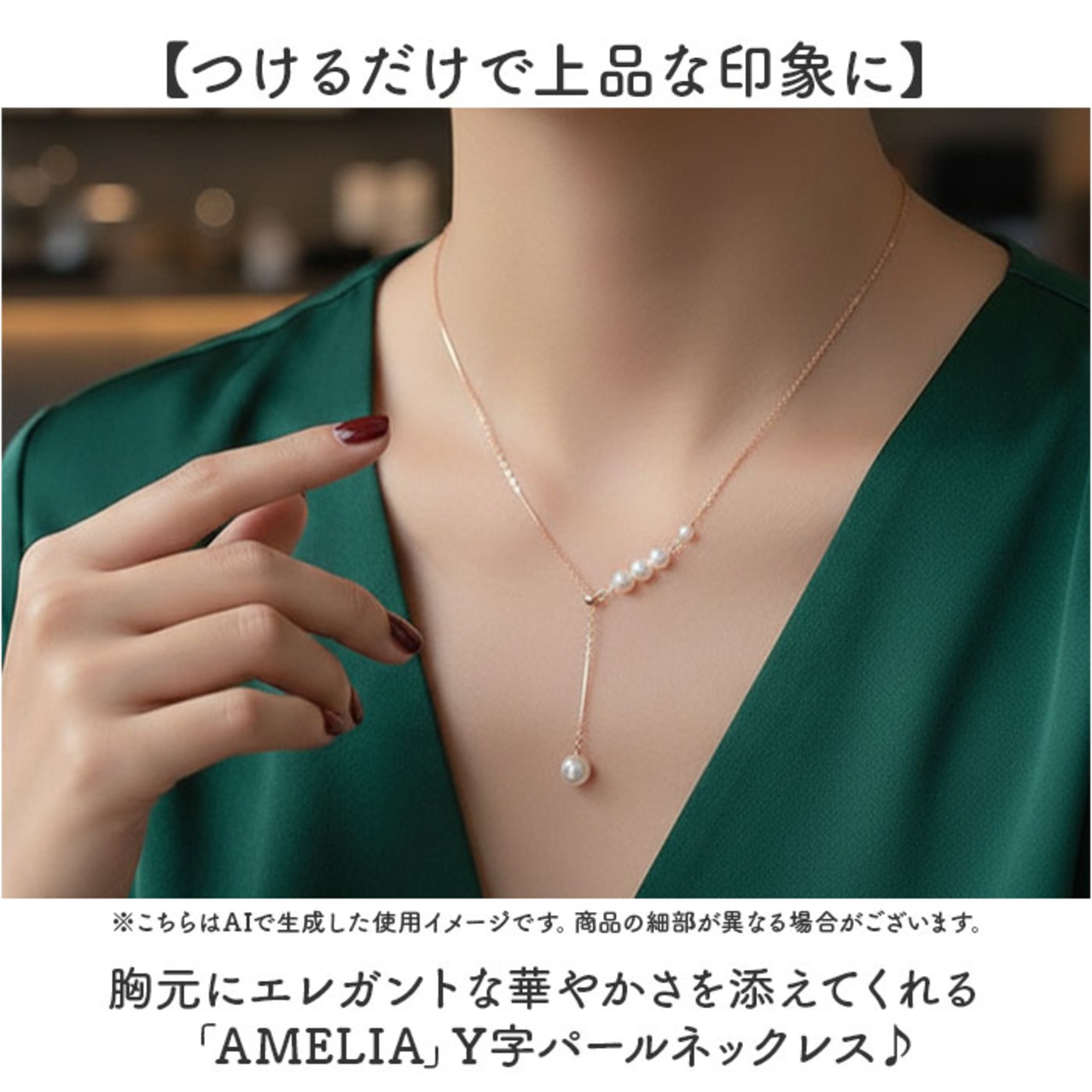 ・胸元にエレガントな華やかさを添えてくれる「AMELIA」Y字パールネックレス♪