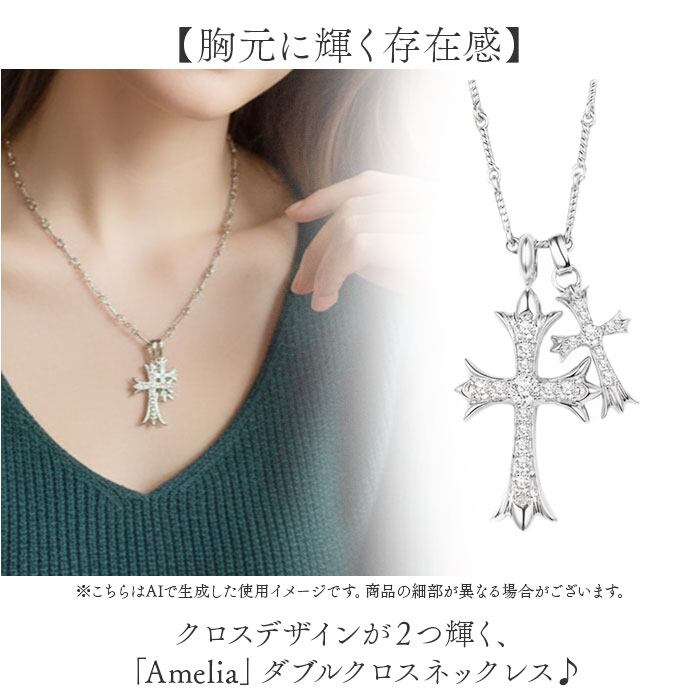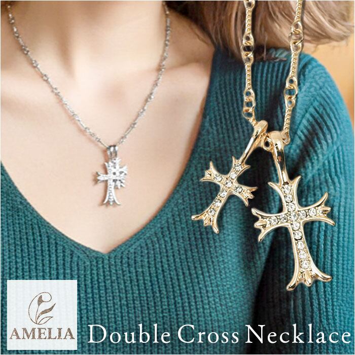 ・クロスデザインが2つ輝く、「Amelia」ダブルクロスネックレス♪