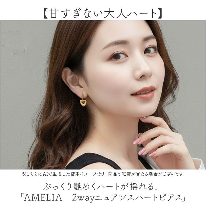 ・ぷっくり艶めくハートが揺れる、「AMELIA 2wayニュアンスハートピアス」