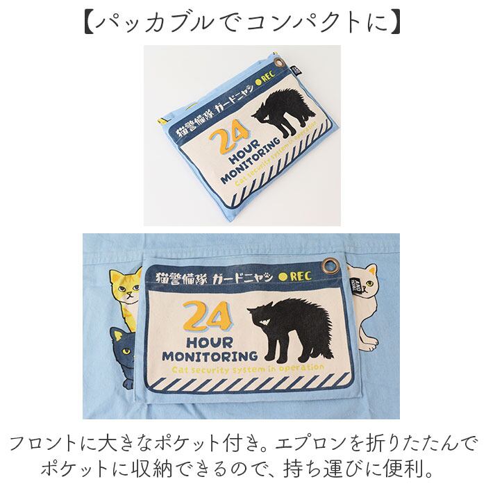 ・フロントに大きなポケット付き。エプロンを折りたたんでポケットに収納できるので、持ち運びに便利。