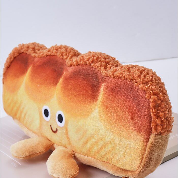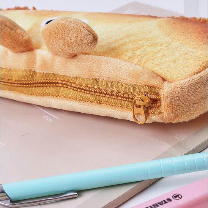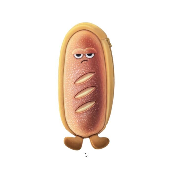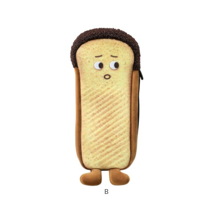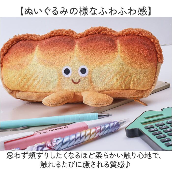 ・ふわふわ触感で癒されるキュートな筆箱!お顔と足つきのパン型ペンケース。