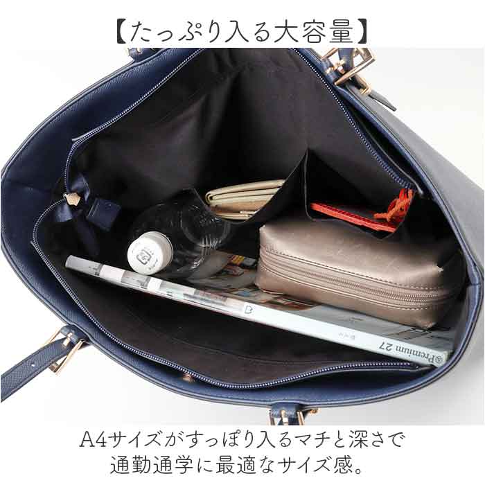 ・A4サイズがすっぽり入るマチと深さで通勤通学に最適なサイズ感。
