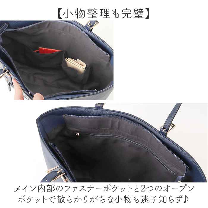 ・メイン内部のファスナーポケットと2つのオープンポケットで散らかりがちな小物も迷子知らず♪
