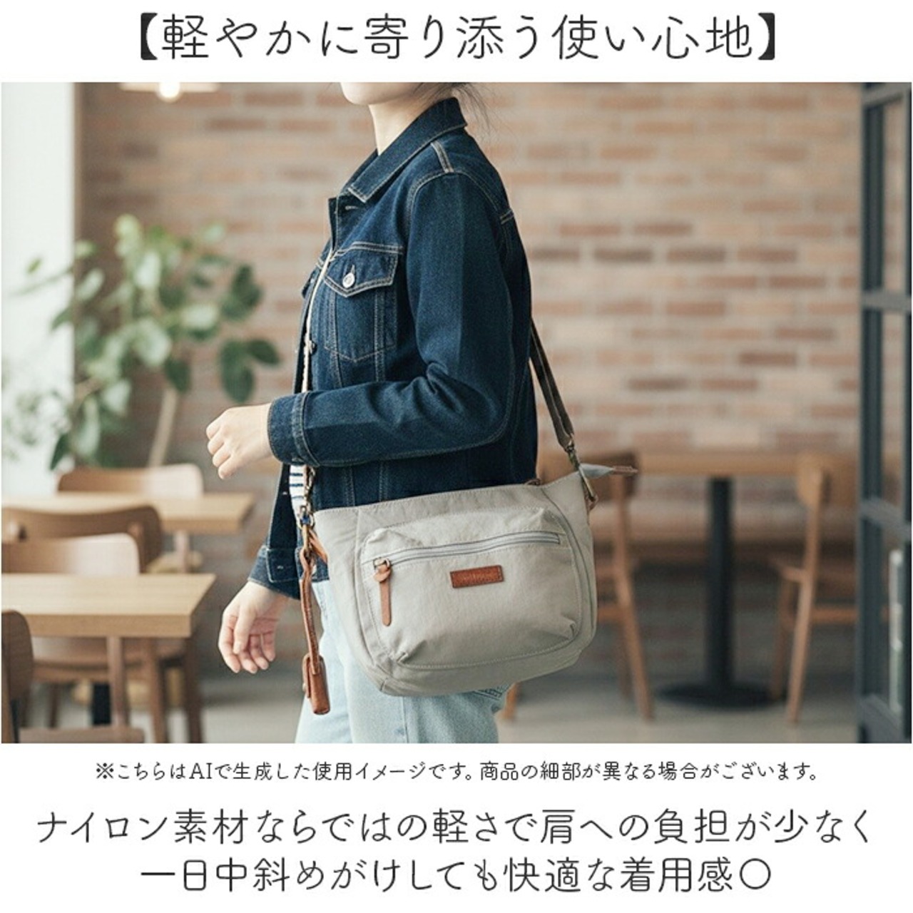 ・ナイロン素材ならではの軽さで肩への負担が少なく一日中斜めがけしても快適な着用感〇