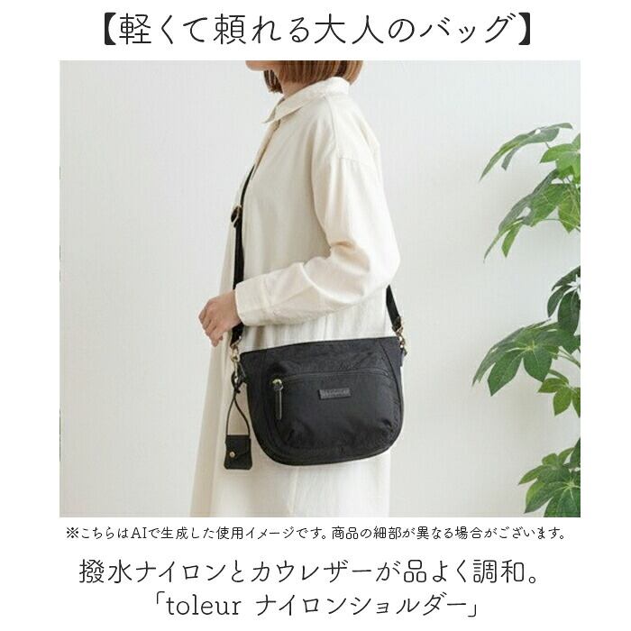 ・撥水ナイロンとカウレザーが品よく調和。「toleur ナイロンショルダー」
